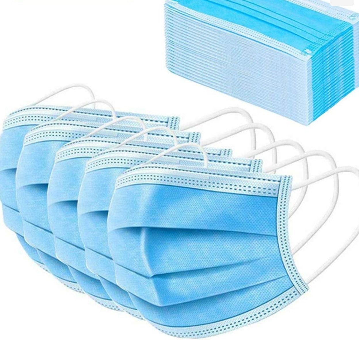 Three-layer disposable face masks with ear loops, providing reliable filtration and comfort for everyday or professional use.